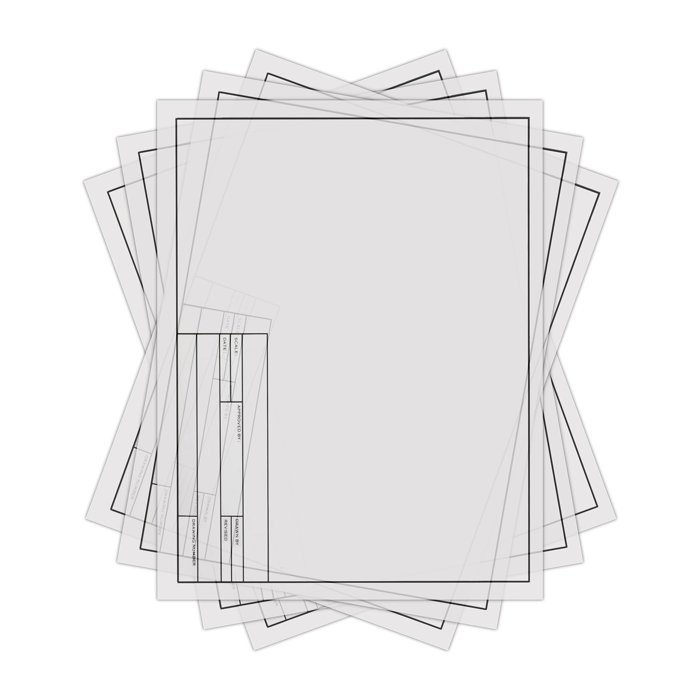 ALVIN 6855-B-1 Alva-Line Tracing Paper Pack with Title Block and Border, Vellum Paper, Suitable with Pencil and Pen No Smudge - 100 Sheet Pack, 8.5 x 11 inch